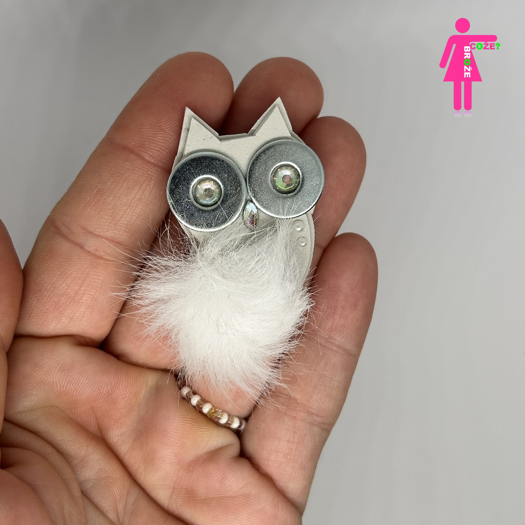 Sovička světle šedá s bambulkou